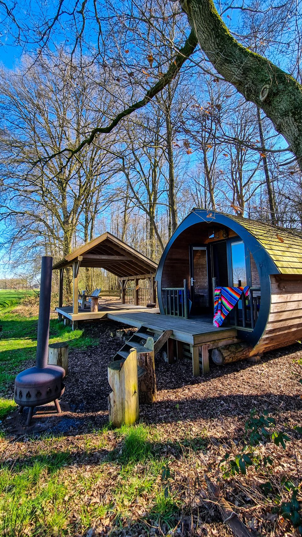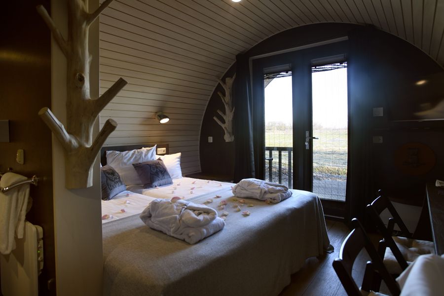 De Bosuil is een knusse hideaway waar rust en natuur centraal staan. Je slaapt in een comfortabel kingsize bed. Daarnaast ook een privéterras met uitzicht over het landgoed. Geen wifi, geen televisie, alleen stilte, natuur en tijd voor elkaar. ’s Ochtends heerlijk ontbijten met de natuur en ’s avonds warm je je op bij de buitenhaard. Een plek om te vertragen en echt even weg te zijn.