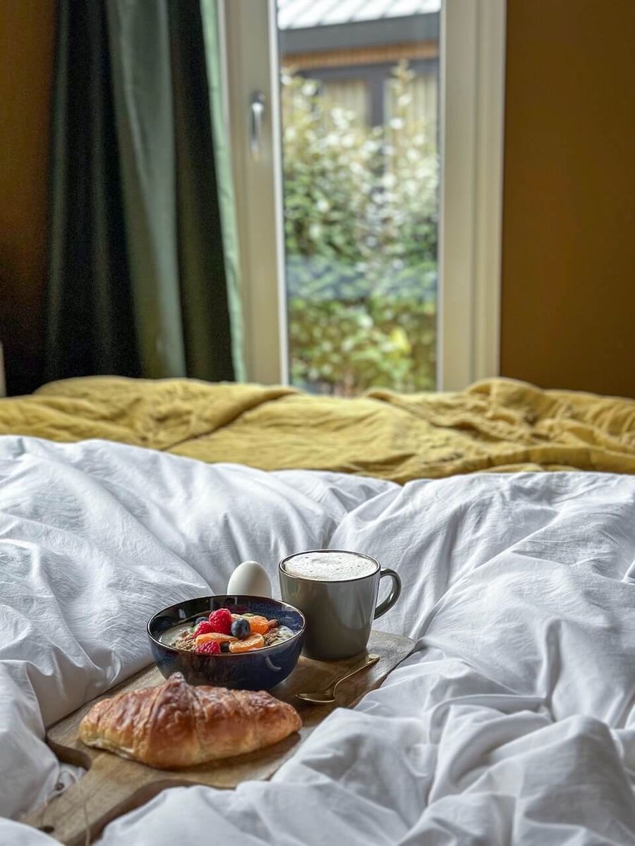 Summ Lodge is een luxe hideaway midden in de bossen van de Veluwe, ontworpen om je direct een gevoel van rust en warmte te geven. Binnen stap je in een stijlvol interieur waar natuurlijke materialen de hoofdrol spelen: veel licht hout, zachte stoffen, warme tinten en grote ramen. Naast het comfortabele woongedeelte vind je een volledig uitgeruste keuken, een ruime badkamer en vaak zelfs wellnessfaciliteiten zoals een sauna. Buiten wacht een privéterras waar je in de ochtend de eerste zonnestralen meepakt met een kop koffie, of ’s avonds de stilte van de natuur beleeft onder een deken van sterren.