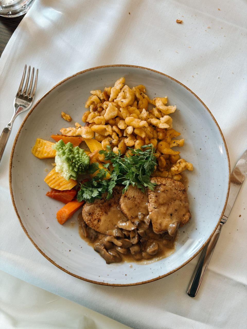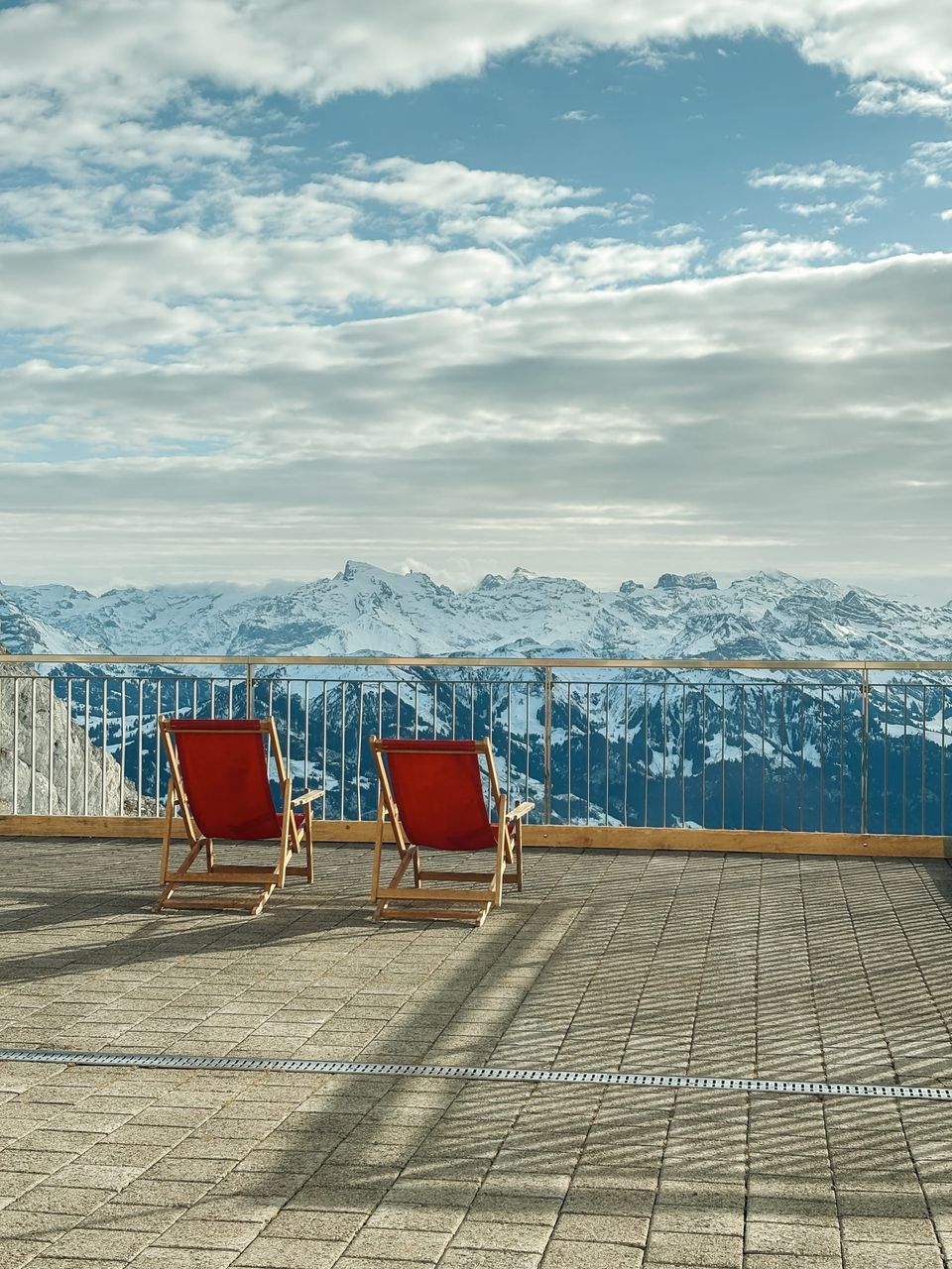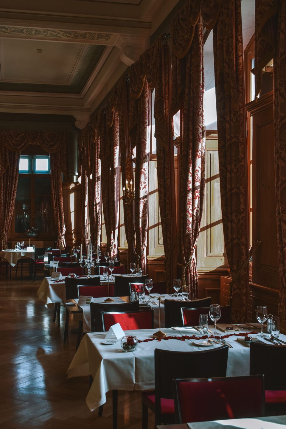 Het restaurant ligt boven op de Mount Pilatus en ontvangt al gasten sinds 1890. Grote ramen zorgen voor veel licht en geven vrij uitzicht op het berglandschap rondom. Binnen voelt het klassiek en rustig, met kroonluchters aan het plafond en grote gordijnen langs de ramen. De keuken serveert Zwitserse gerechten die passen bij de omgeving: stevig, vertrouwd en perfect na de reis omhoog. Ze hebben 3 verschillende eetkamers én een heerlijk zonterras waar, de naam zegt het al, je heerlijk kunt zonnen.