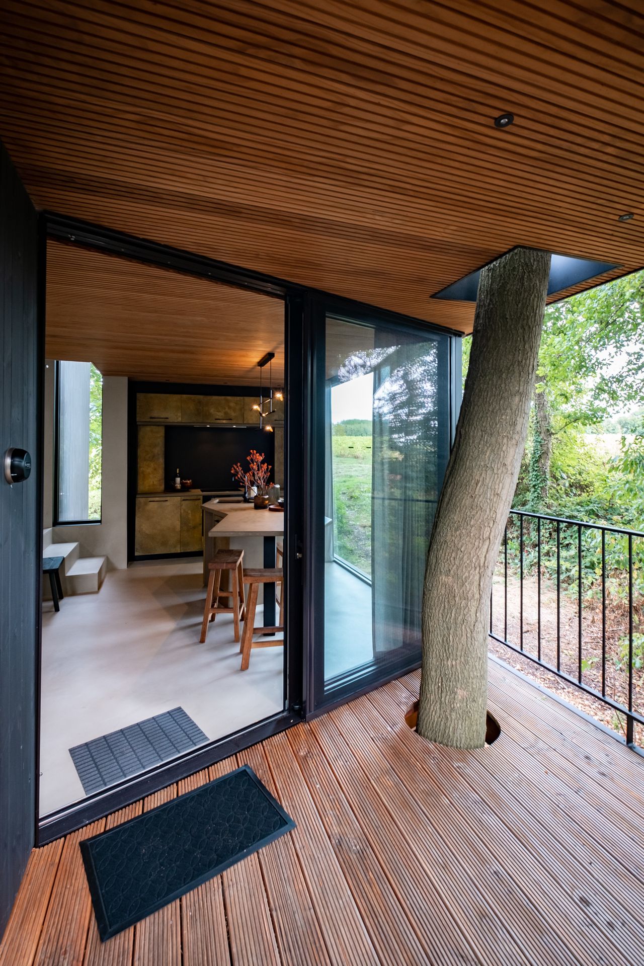 Omgevingstip: direct naast de cabin beginnen wandelroutes van de Landschapstriënnale, waar je onderweg kunst en stilteplekjes tegenkomt. Een stukje verderop vind je een oude veldkapel of een boomgaardwinkel waar perensap van eigen fruit te koop is. Eindig vervolgens je dag op het terras met uitzicht op grazende schapen. Rust met een gouden randje.