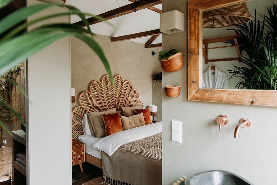 Word wakker met uitzicht op het water en de ruïne van Kasteel Teylingen bij B&B Lodge & Loft, gelegen aan een van de oudste straatjes van Sassenheim. Elke kamer beschikt over een eigen keuken met zithoek en een privéterras. Kies uit verschillende goedgevulde ontbijtpakketten, zoals het avocado-ontbijt met desem meergranenbrood, ei, avocado, hummus, tomaat en jus d’orange, of het gezonde havermoutontbijt met amandelmelk, kiwi, blauwe bessen, kokosrasp, honing, amandelen en jus d’orange. De sfeer in Lodge & Loft heeft een relaxte Ibiza-vibe: lichte houten meubels, warme oranje tinten, lichtbruine balken en veel planten creëren een zonnige, huiselijke en ontspannen ambiance.