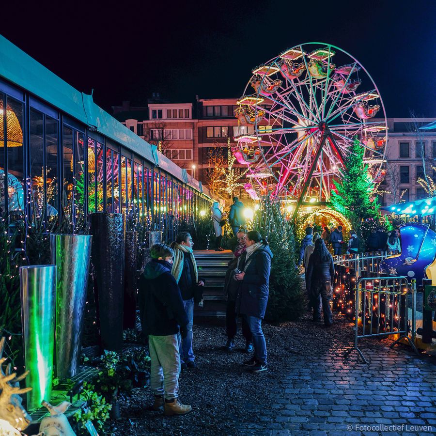De kerstmarkt van Leuven vult tussen 9 en 21 december het Ladeuzeplein en het Hooverplein met meer dan 100 sfeervolle chalets. Tussen de houten kraampjes ontdek je lokale specialiteiten en winterse hapjes uit verschillende landen. Waaronder poffertjes uit Nederland, crêpes uit Frankrijk en langos (een hartige snack van oliebollen deeg met toppings) uit Hongarije. Een bijzondere trekpleister is Winterstube ‘Rudolf’. Hier warm je op met glühwein of een warme chocolademelk. De knusse houten inrichting zorgt voor een echte kerstsfeer. Vanaf de Universiteitsbibliotheektoren heb je een prachtig uitzicht over Leuven. De verlichte pleinen en historische gebouwen schitteren als een winterwonderland vanaf 40 meter hoogte. Met zijn gezellige sfeer en knusse chalets behoort deze kerstmarkt zeker tot de leukste van Vlaanderen.