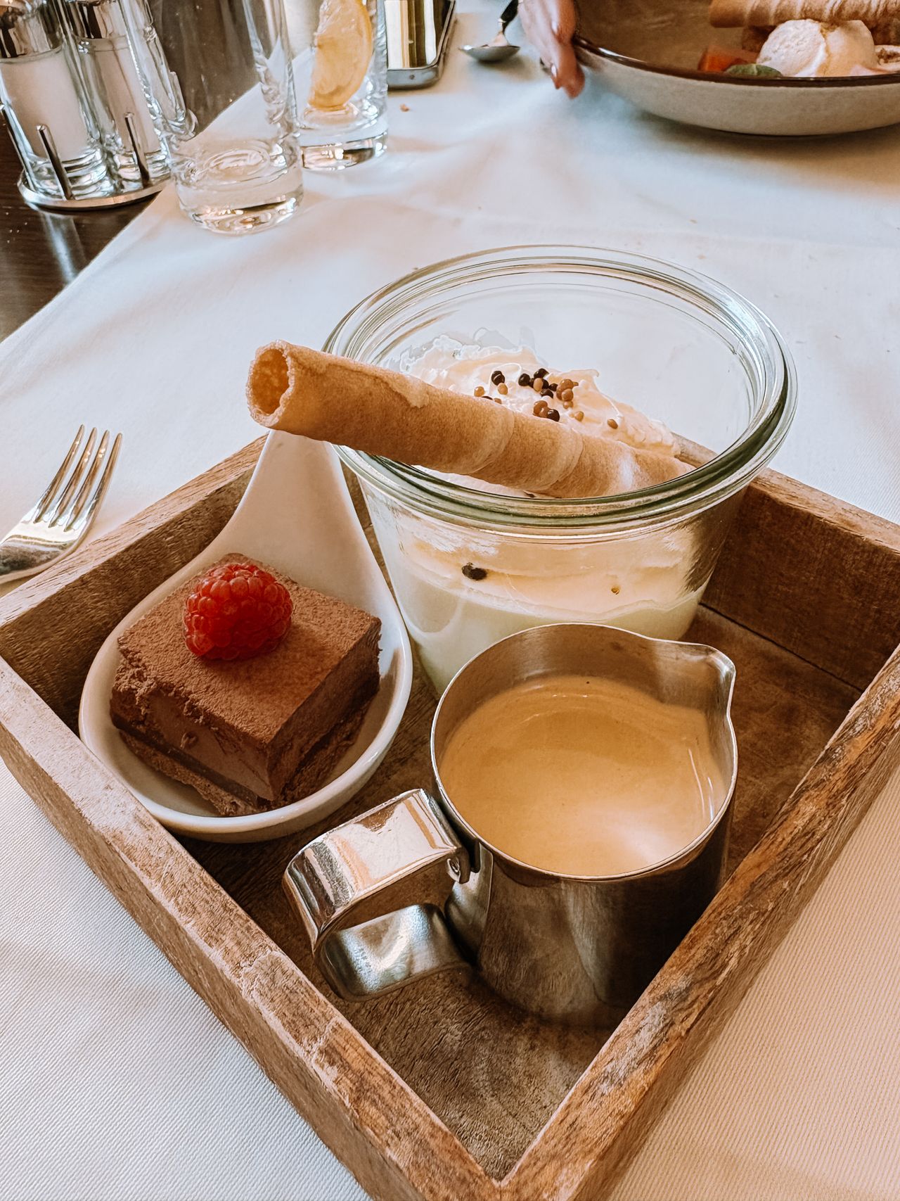 We sluiten de dag bijzonder af met een diner bij Restaurant Salzano, net buiten het centrum van Interlaken. In de keuken worden alpine gerechten gemaakt met een nieuwe draai. Denk aan lokaal, seizoensgericht en creatief. Elk bord vertelt een verhaal over de omliggende bergen, bossen en meren rondom Interlaken. Kruiden komt uit de kruidentuin van het hotel en andere ingrediënten uit de omgeving. Tijdens het proefdiner genoten we onder andere van een stoof van kalfsvlees uit Grindelwald. En als dessert een ijstaartje met kastanje. Elk gerecht is even fotogeniek en smaakvol.