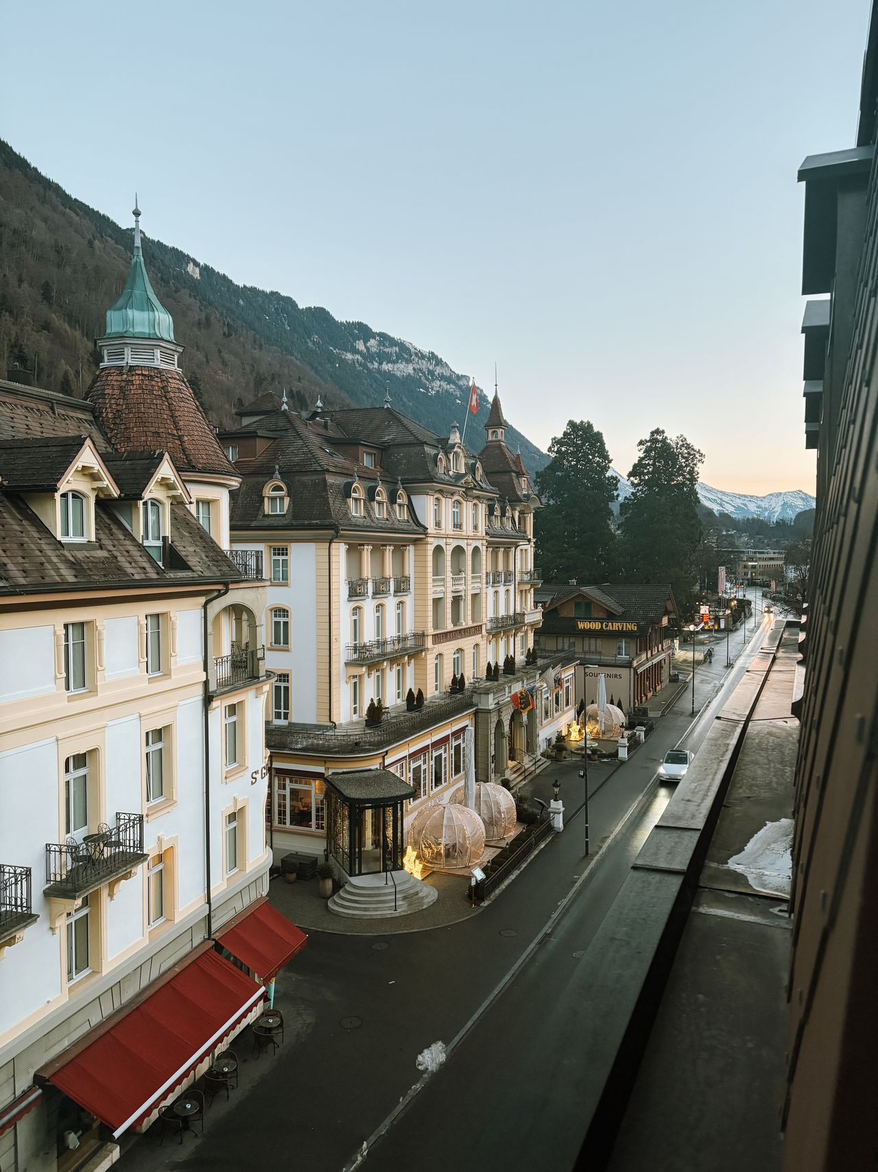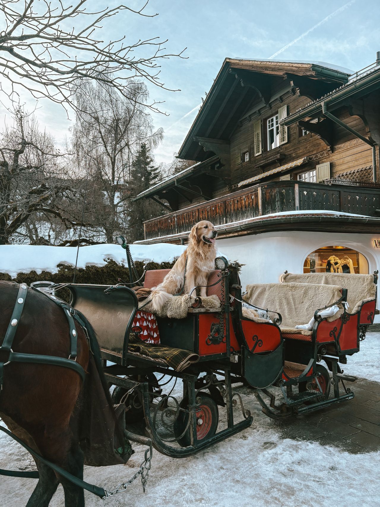Voor we naar Interlaken reizen, hebben we nog wat tijd om Gstaad te ontdekken. Gstaad staat bekend als luxe skioord en dit zie je ook terug aan de luxe merken in de winkels op de Gstaader Promenade. Echter, kan je het zo luxe maken als je zelf wilt. Een wandeling door het centrum alleen al is een leuke activiteit. Wij drinken een warme chocolademelk op een pop-up dakterras midden op de Promenade. We voelen ons weer even kind door de overdadige versiering met marshmallows en sprinkles. En dan zie ik een van de liefste dingen ooit! Een Golden Retriever die zoet zit te wachten op het bankje van een paardenkoets. Dit lijkt een tafereeltje uit een kerstfilm!