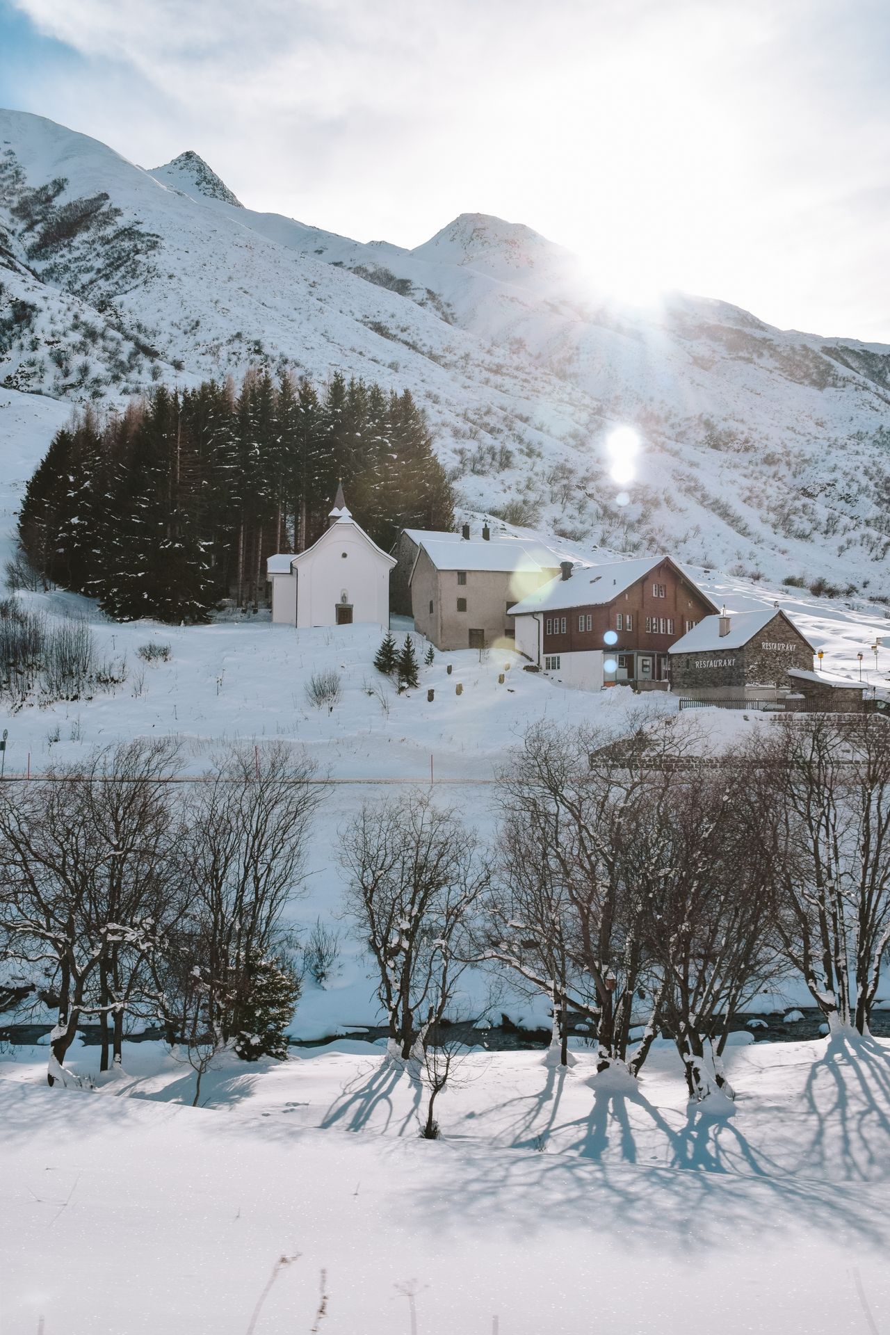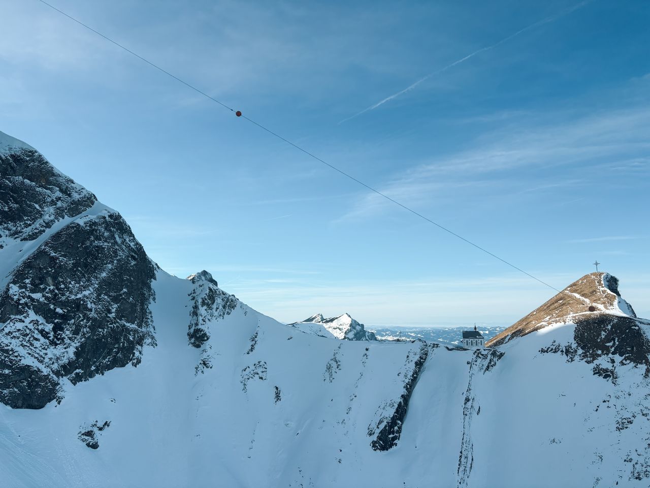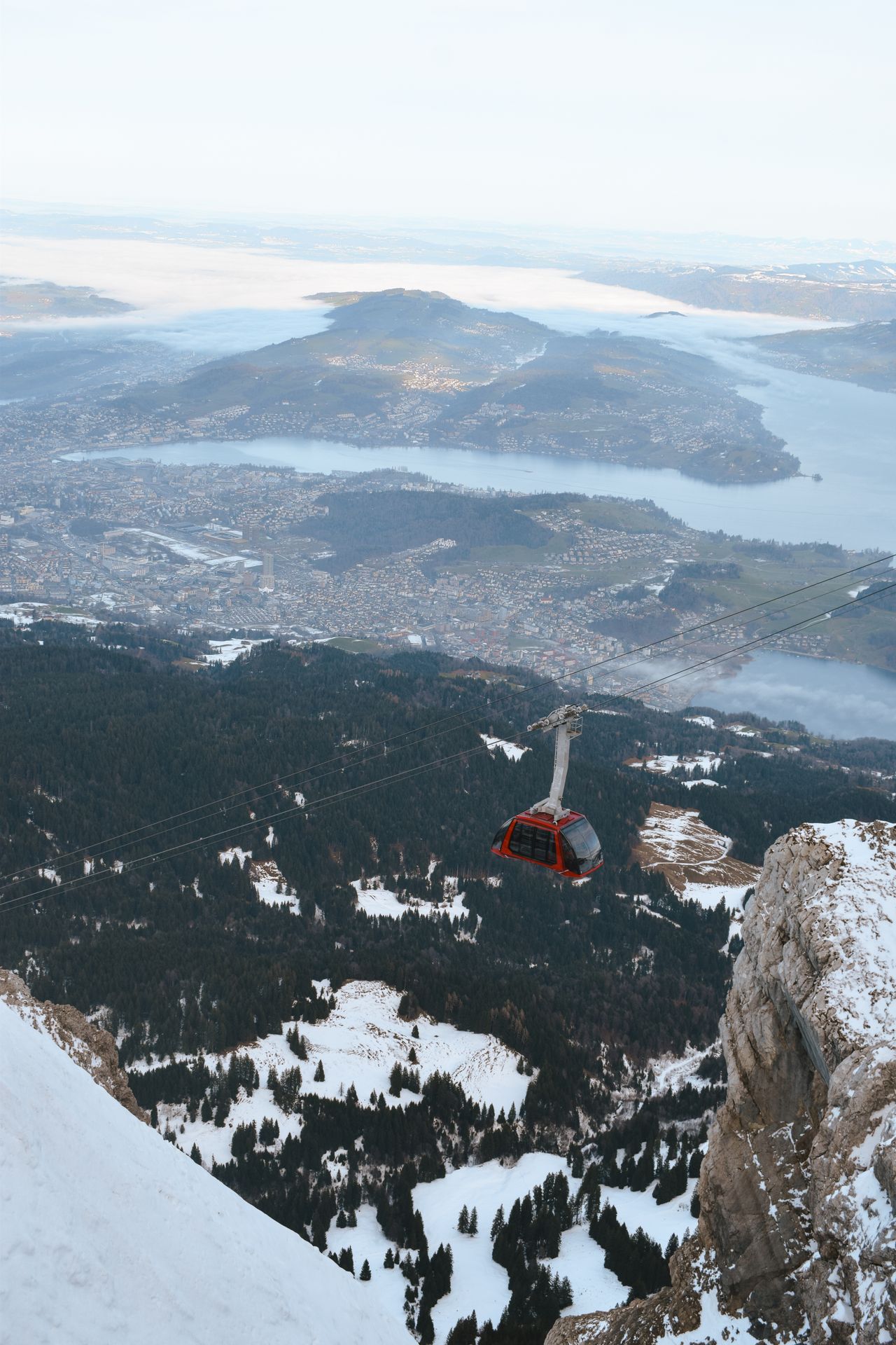 Bij het dalstation gaan we omhoog naar Mount Pilatus, de ‘huisberg’ van Luzern. Je zit dertig minuten in de gondels voor vier personen en pakt daarna nog een grote gondel naar de top. Leonie van Zwitserland Toerisme wijst ons op een mooi kapelletje dat we op de berg kunnen zien liggen. Onze camera’s en telefoons worden tevoorschijn gehaald en we vragen ons af of er een wandelpad is waarmee de kapel bereikt kan worden. In de sneeuw is het onzichtbaar.