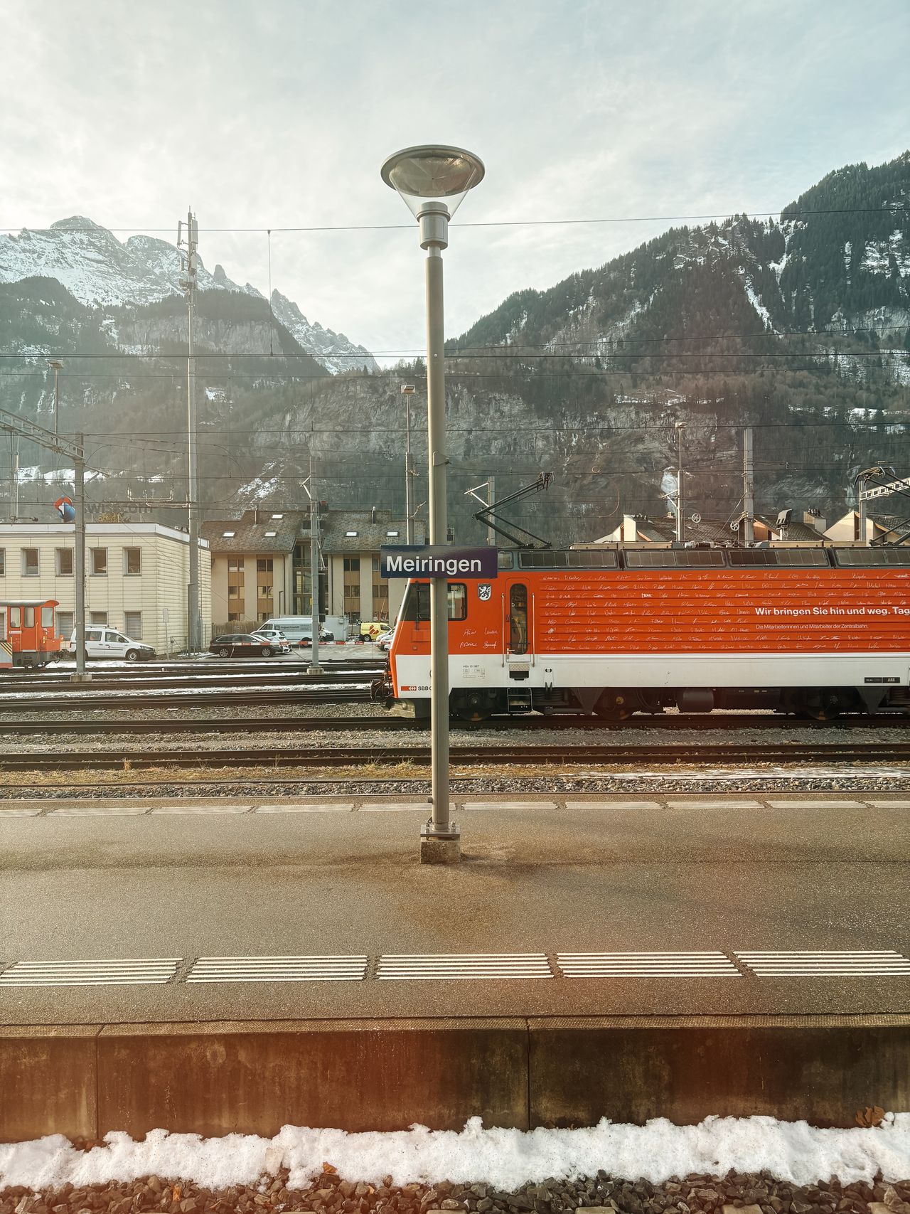 Vandaag vervolgen we onze weg en stappen we vanuit Andermatt op de trein richting Brig. Dit stuk volgt een deel van de Glacier Express. Veel mensen denken dat je slechts die luxe panoramatrein kunt boeken. Maar hier rijdt ook een gewone trein. Je krijgt hetzelfde uitzicht en ook grote ramen waardoor je niks mist. De trein rijdt langs bergtoppen, ijskoude rivieren en bruggen. Waar treinreizen in Nederland vooral een manier van verplaatsen is, voelt het in Zwitserland als een ervaring op zichzelf. Ik weet niet of ik links of rechts moet kijken. Om elke hoek verschijnt een nieuw indrukwekkend winterlandschap door de grote ramen. We reizen verder met een panorama-treinervaring op de GoldenPass Express. Hier gebeurt iets bijzonders: in Zweisimmen wisselt de trein van normaal spoor naar smalspoor. Vroeger betekende dat overstappen. Nu blijf je zitten, de trein past zich aan.
