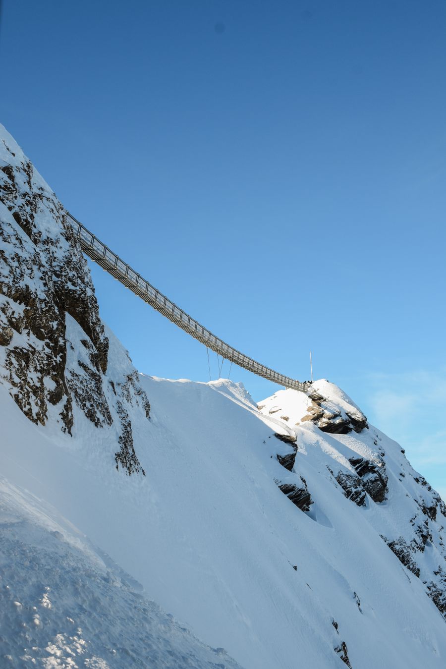 Vanaf Saanenmöser reizen we naar Gstaad en vervolgens naar Col-du-Pillon. Hier stappen we in de gondel naar Glacier 3000. Terwijl de bomen in het dal steeds kleiner worden, komen de rotsen steeds dichterbij. Ik zie skiërs van extreem steile hellingen naar beneden glijden. Maar op Glacier 3000 valt nog meer te beleven naast skiën. Glacier 3000 staat bekend om eeuwig ijs en uitzichten op de Eiger, Mönch en Jungfrau. Maar er valt ook een spannende activiteit te beleven. Ik heb extreme hoogtevrees maar besluit toch te wandelen over de Peak Walk by Tissot, een hangbrug tussen twee toppen. Terwijl ik over de brug loop, voel ik de ijzige wind en sneeuw om mij heen blazen. Hier voel ik mij echt even klein tussen al deze Zwitserse grootheid. Wist je dat dit de enige hangbrug ter wereld is die twee bergtoppen met elkaar verbindt?