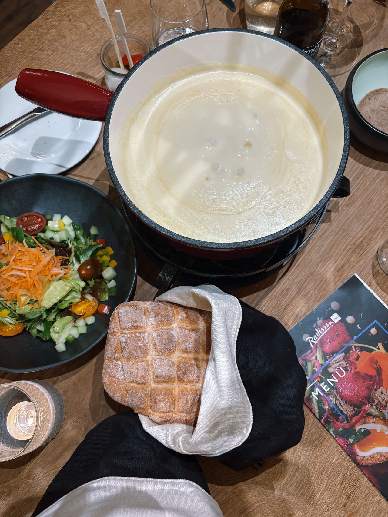 Voor het diner staat wederom een kaasfondue op ons te wachten maar dit keer op een extra bijzondere locatie. Bij het hotel staat een houten chalet waarin je de echte wintersfeer voelt. De koeienbellen aan de gevel maken de ervaring compleet. En de kaasfondue? Die was wederom heerlijk! Na een goede nacht staat de volgende ochtend een uitgebreid ontbijt op ons te wachten met verse sappen, hartvormige eitjes (te schattig, toch?) en chiapudding.