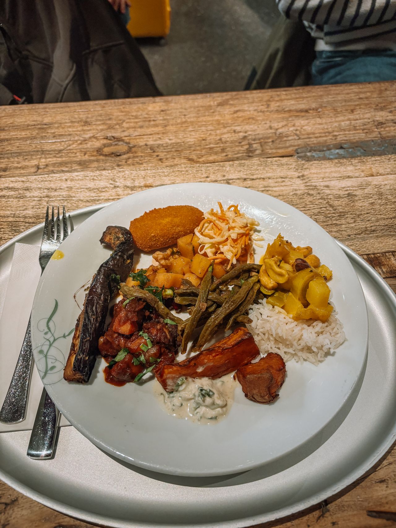 Ik sta iets na zes uur in de ochtend met mijn koffertje op station Utrecht Centraal. We gaan niet alleen op pad met de trein in Zwitserland maar reizen ook vanuit Nederland met de trein. In Nederland stap je in op Amsterdam Centraal, Utrecht Centraal of Arnhem. Vanaf hier maak je diverse tussenstops. In Basel aangekomen hebben we wat tijd over. Een leuke tip voor als je toe bent aan een pauze is Tibits. Dit vegetarische en vegan restaurant is een stationsformule en zit rondom grote stations in Zwitserland, in Basel recht tegenover het station. Je schept op wat je lekker vindt en voor het gewicht van de gerechten op je bord betaal je. Van gegrilde aubergine tot kleine beignets met jalapeño en zure room. Ik vond echt alles zo smaakvol.