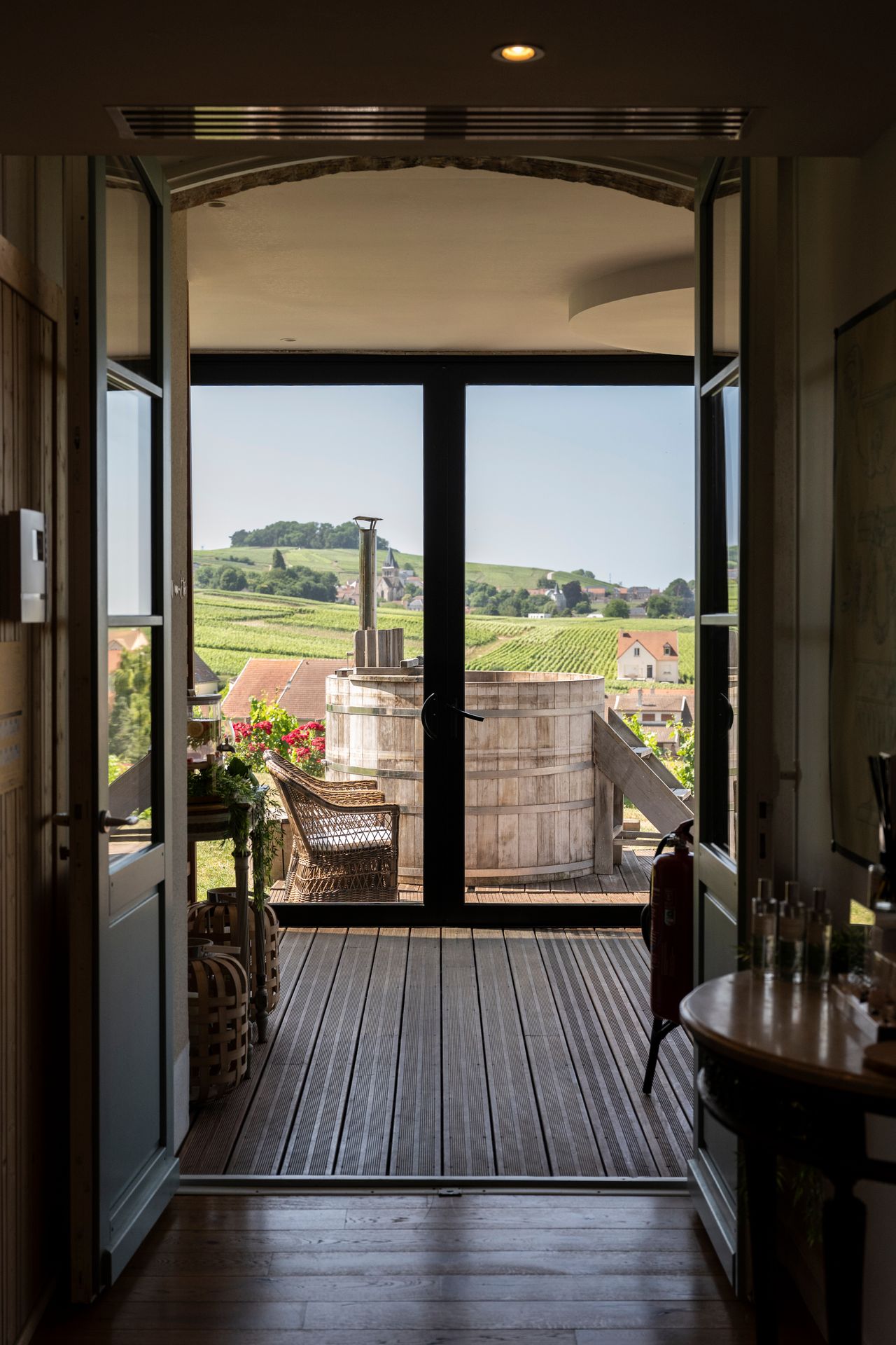 Château de Sacy is een elegant kasteelhotel voor overnachten in Frankrijk. Deze ligt midden tussen de wijngaarden van de Champagne. Het château ligt op een heuvel en biedt uitzicht over glooiende wijnvelden. De kamers zijn elk uniek ingericht rond historische thema’s zoals Madame de Pompadour en Marie Antoinette. Je kiest uit klassieke kamers, deluxe kamers of suites met uitzicht over de wijnvelden. Veel kamers hebben bad, douche en panoramische ramen richting de Montagne de Reims.
