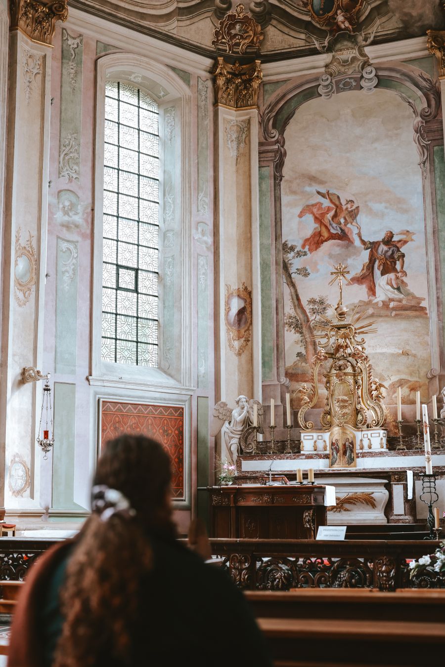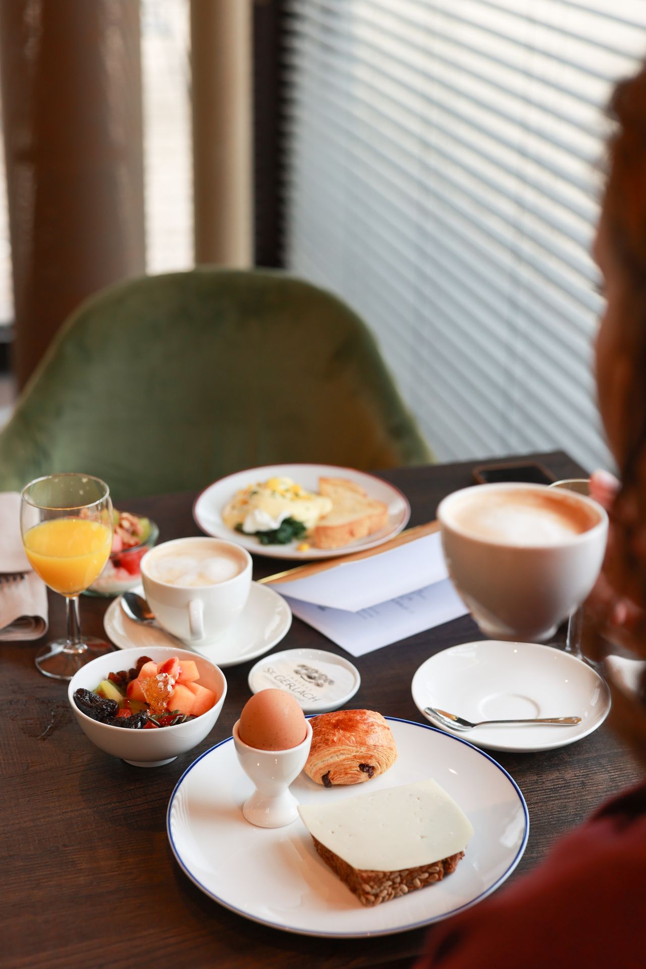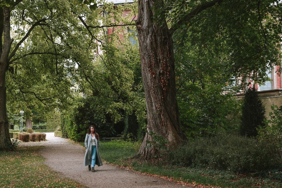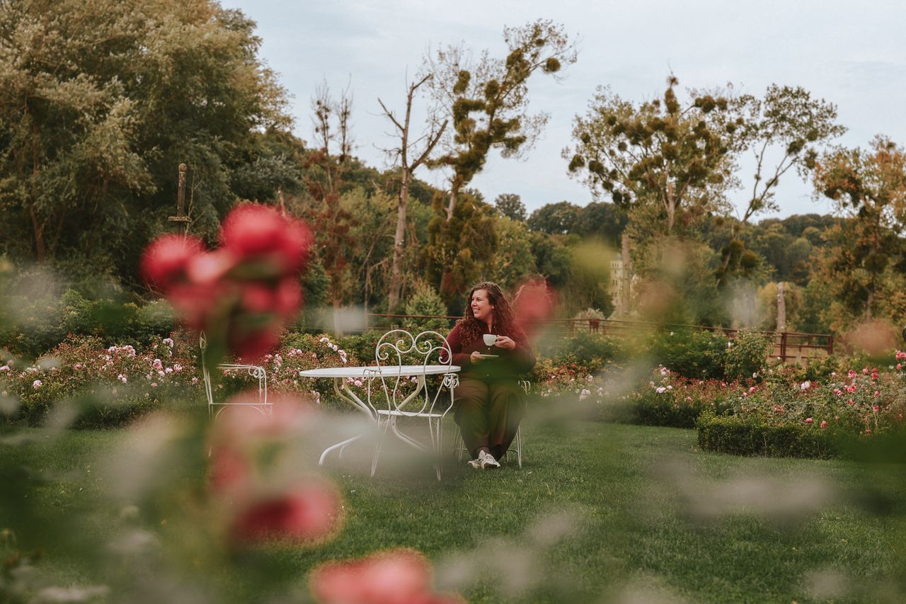 De volgende ochtend begonnen we de dag met ontbijt in de ontbijtruimte van het hotel, waar grote ramen uitzicht geven op een van de tuinen rondom het château. Bij het buffet waren onder andere vers brood, fruit, yoghurt, appelsap en honing van de eigen bijenvolken beschikbaar. Na het ontbijt besloten we het landgoed verder te ontdekken en namen we een kop koffie mee naar de rozentuin, een rustige plek om de ochtend te beginnen. Vanuit hier kijk je uit over de uitgestrekte tuinen en het park van Château St. Gerlach.
