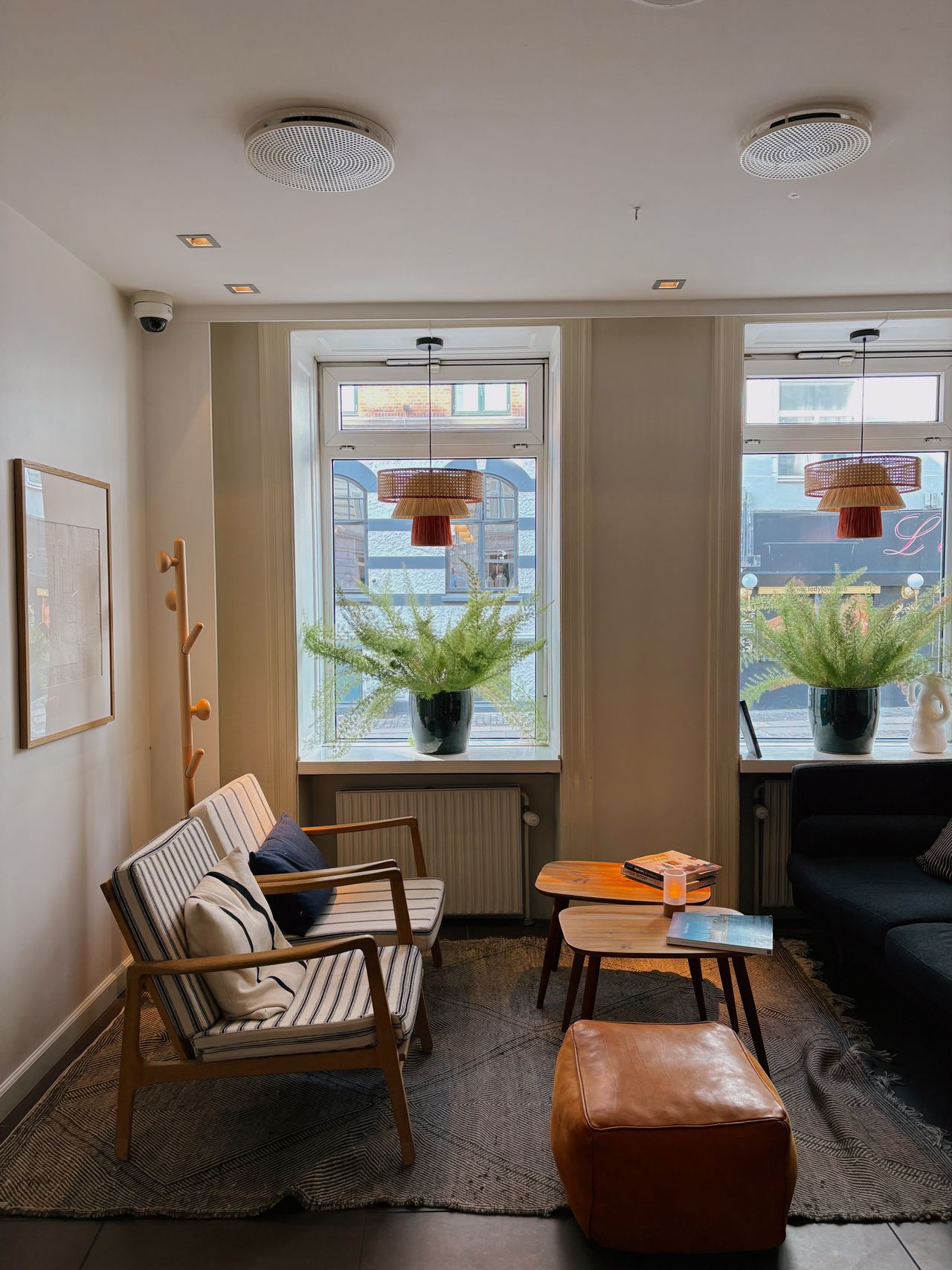 Na een middag struinen checken we in bij het Mayfair Hotel. Een stijlvolle en rustige uitvalsbasis voor je stedentrip in Kopenhagen, met een fijne Scandinavische uitstraling. De centrale ligging maakt het makkelijk om alles lopend of fietsend te bereiken. En wil je toch wat verder weg? Een blokje verder ligt het station op nog geen vijf minuten wandelen. De kamers zijn comfortabel en modern ingericht en afgewerkt met warm hout en kleurrijke posters.